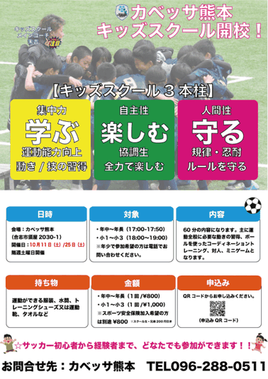 問合せ:巻×マルバサッカースクールカベッサ熊本(担当:末吉) TEL:096–288–0511